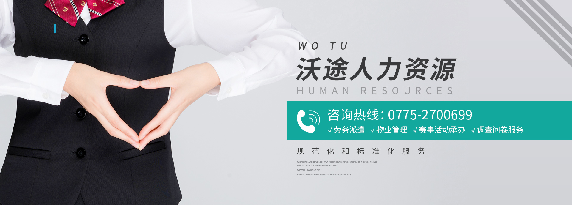 公司業(yè)務(wù)涵蓋勞務(wù)派遣、物業(yè)管理、人力資源管理咨詢、職業(yè)中介服務(wù)、停車場管理、家政...